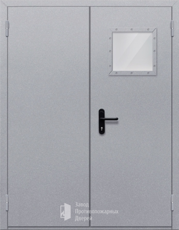 Противопожарная металлическая дверь двупольная остекленная |