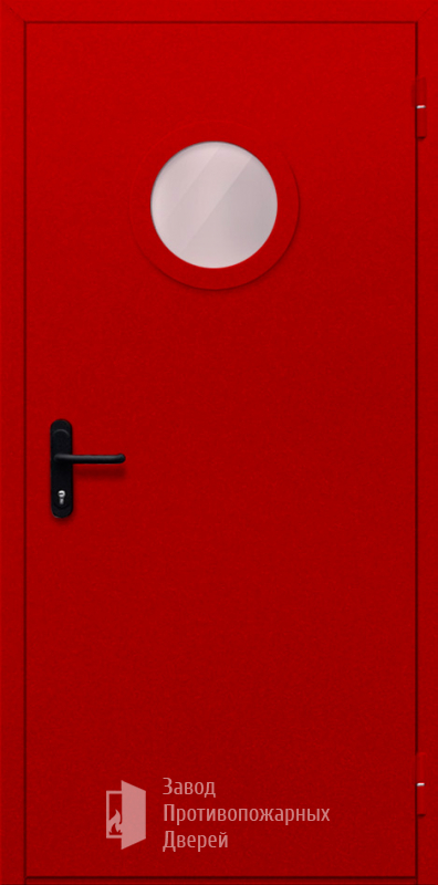 Противопожарная дверь однопольная с круглым стеклом красная |